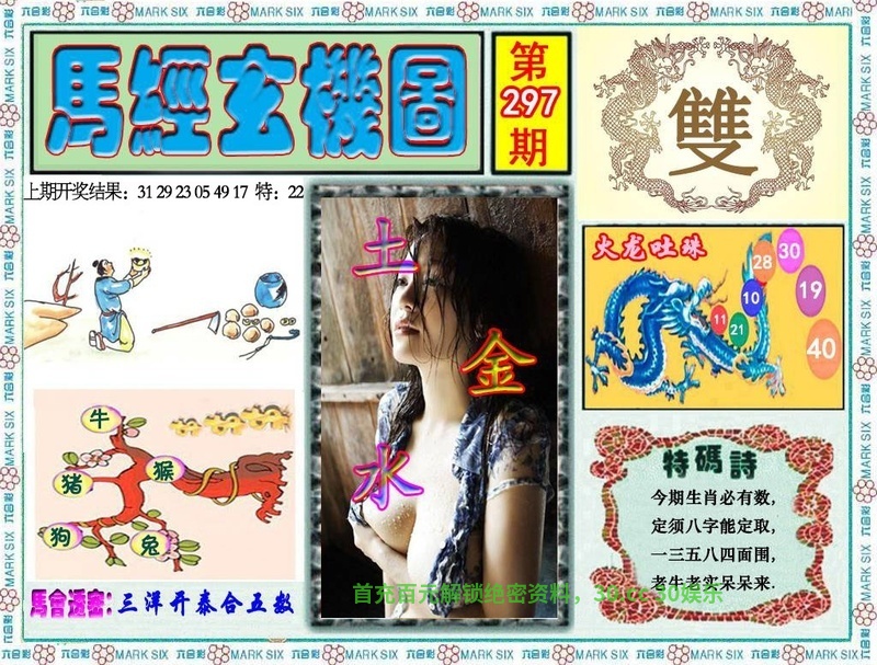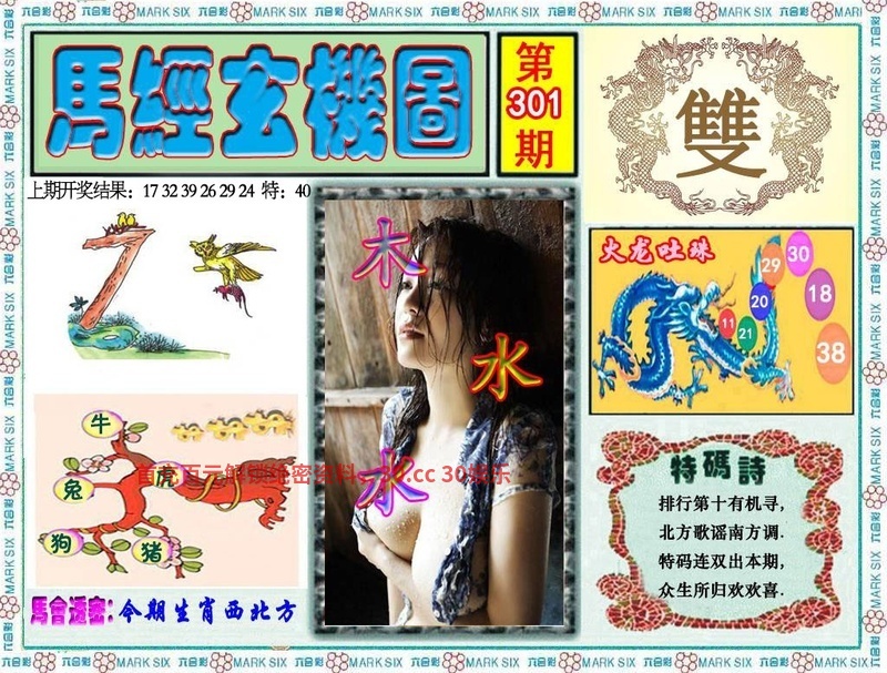 301期马经玄机 特碼詩:排行第十有机寻,北方歌谣南方调,特码连双出本期,众生所归欢欢喜. 解肖:牛兔狗猪虎 |